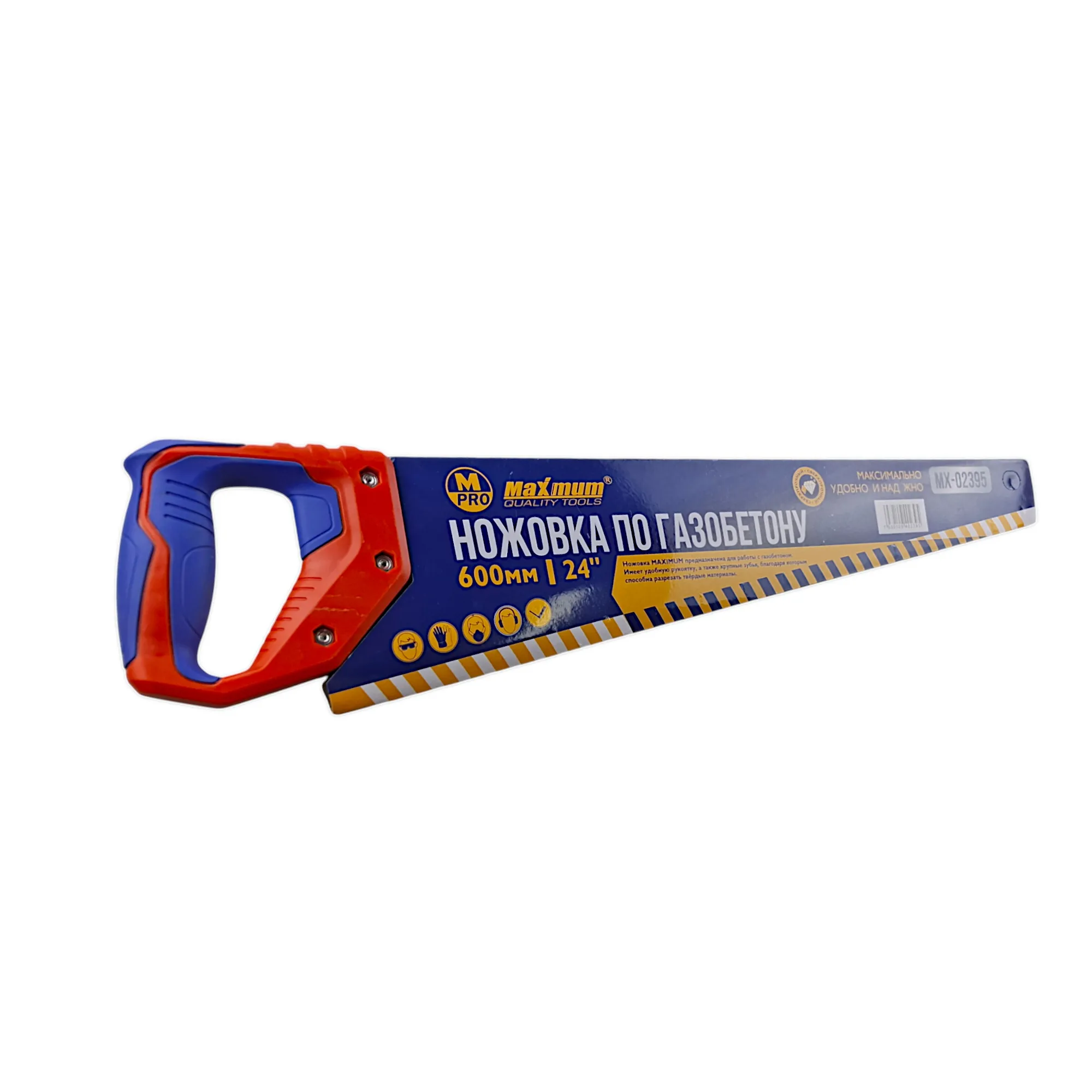 Ножовка по газобетону MAXIMUM с полотном 600 мм (24") предназначена для быстрой и точной резки газобетонных, пенобетонных блоков и других ячеистых бетонов. Оснащена удобной двухкомпонентной рукоятью и тефлоновым покрытием, которое снижает трение и защищает полотно от коррозии.