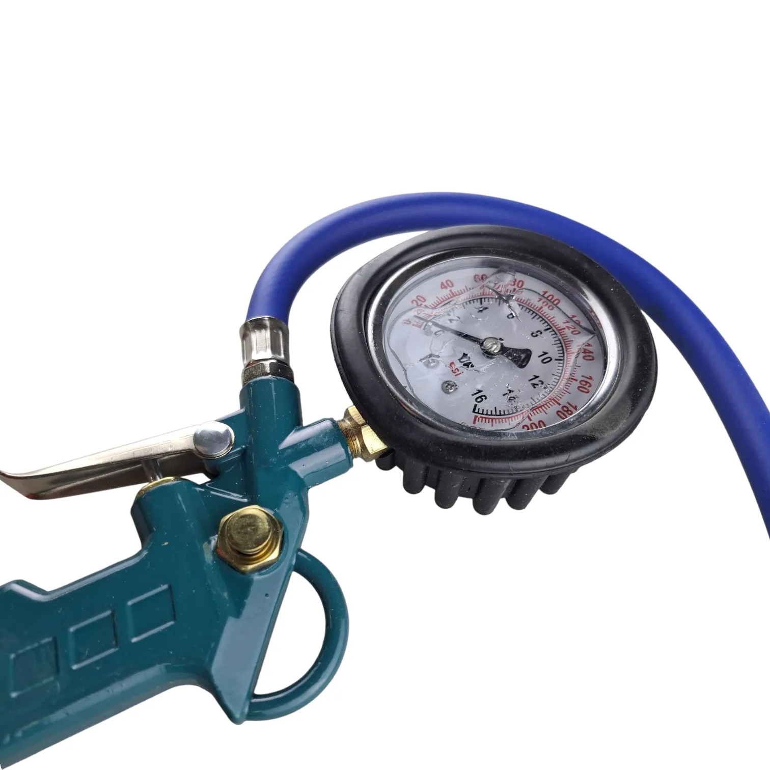 Пневматический пистолет оснащен кнопкой стравливания воздуха и манометром с двойной шкалой, что дает возможность контролировать давление в шинах во время подкачки. Пистолет имеет гибкий шланг 36,5 см, который позволяет производить работы в узких и труднодоступных местах. Отличная ударостойкость благодаря легкому алюминиевому прорезиненному корпусу.