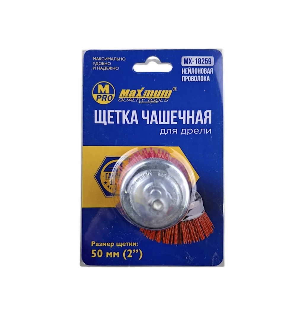 Щетка для дрели чашечная нейлоновая 50 мм, 2", со шпилькой, "MAXIMUM" MX 18259